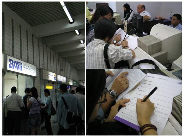 飛抵開羅機場,在售票口(左圖)買妥落地簽用郵票,