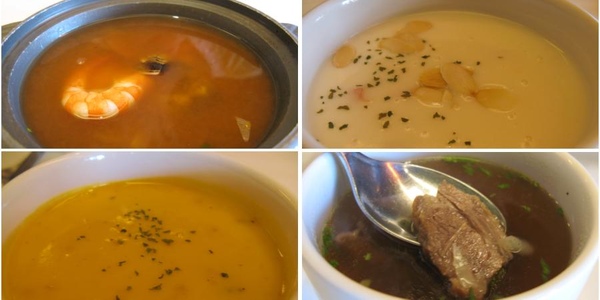 (義式海鮮清湯、巧達蛤蜊濃湯、杏鮑菇南瓜濃湯、清燉牛肉湯)