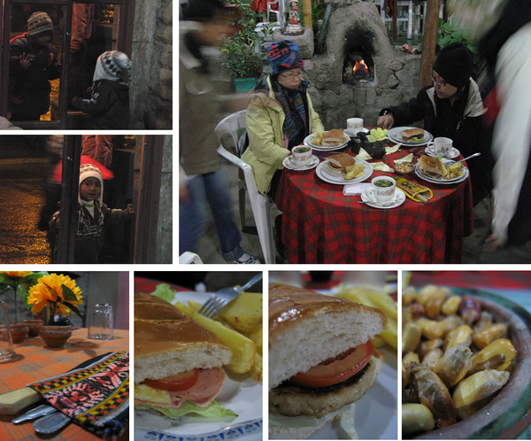 貼心店家,升起爐火,一口古柯茶,一口漢堡/薯條,減去寒意,滿足口腹