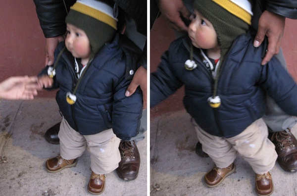 (雨一直下,拔拔只好抱著我站在這裡躲雨,好無聊喔 >_< )